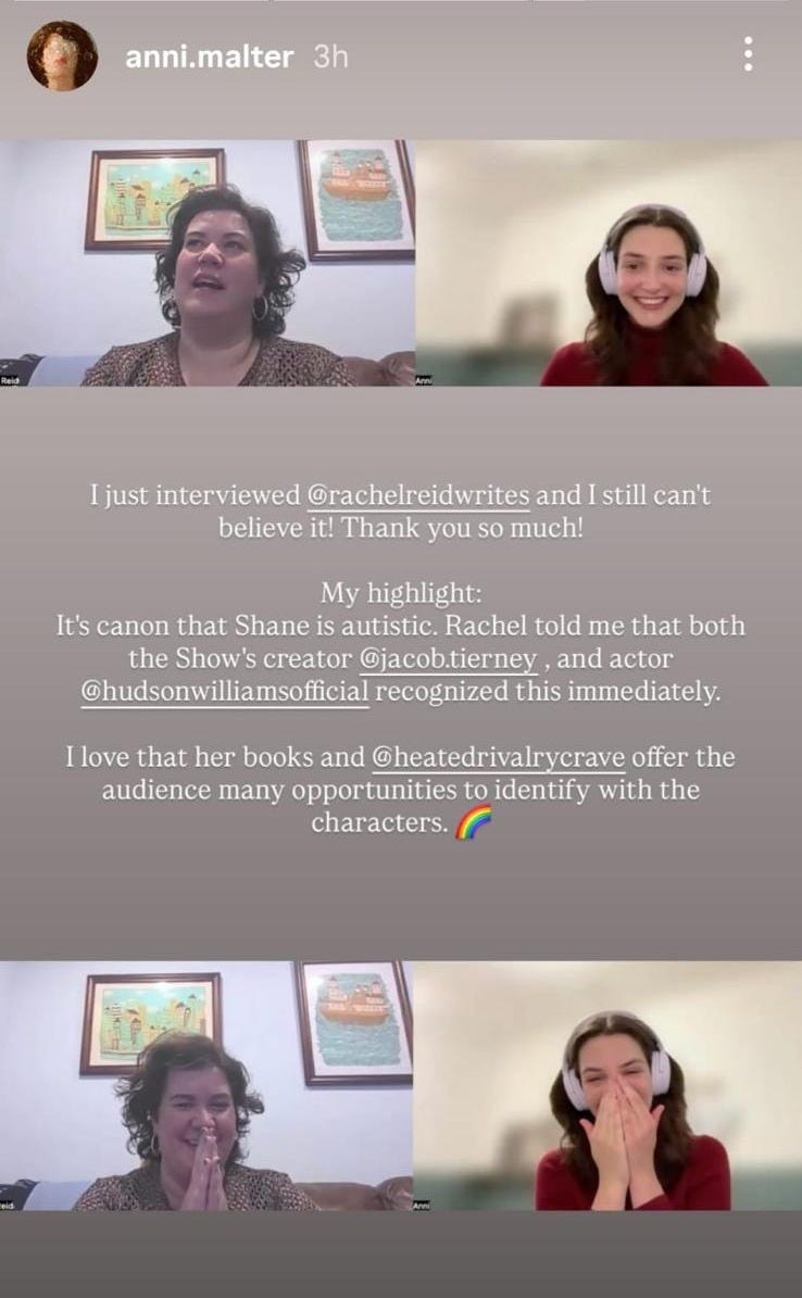 Two weeks ago, I had the privilege of interviewing Rachel Reid, the author of Heated Rivalry. Afterward, I posted an Instagram Story about it, normally the kind of post maybe a hundred people see, and shared the same thought on TikTok. I didn’t think much of it.